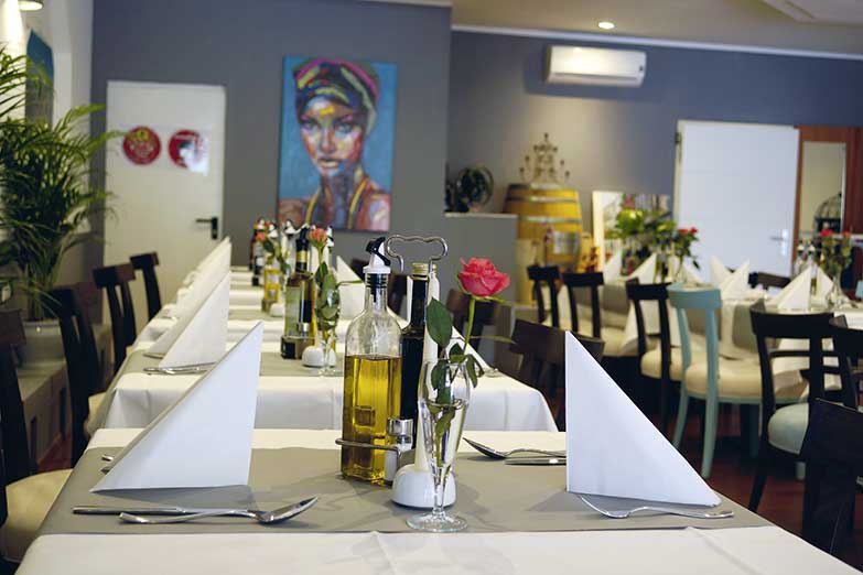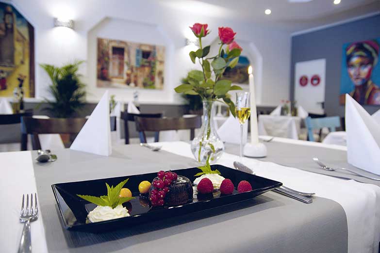 Hier finden bis zu 80 Gäste Platz, um in einem gemütlichen, mediterranen Ambiente authentisch italienisch zu genießen. Es gibt typische Spezialitäten aus der Heimat der Gastgeber: Fischsuppe, Carpaccio, Vitello Tonnato, gemischte vegetarische Antipasti, zahlreiche Pizzen, Pastagerichte, Carne-Variationen z.B. mit Gorgonzola- oder mit grüner Pfeffersahnesauce - dazu je Salat und frittierte Kartoffelscheiben als Beilage, Picatta Milanese, gegrillten Schwertfisch oder die Piatto „Bingo Bingo“ mit Tintenfisch, Scampis, Rindersteak und Lammkoteletts. Je nach Einkauf gibt es weitere Fischvariationen z.B. mit Dorade, Seeteufel, Goldbrasse oder Muscheln. Die monatlich wechselnde Karte, z.B. mit Lammfilet an Salbei-Weißweinsauce bereichert das Angebot.
