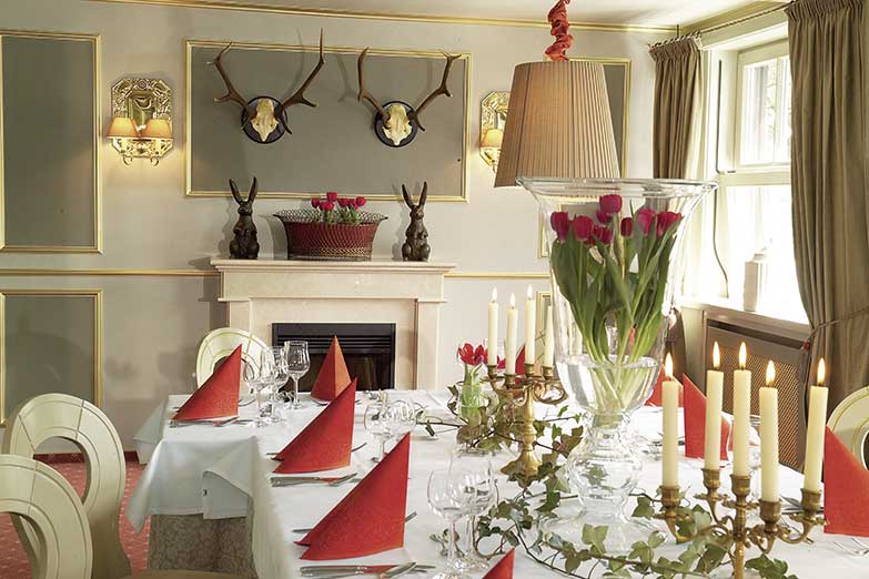 Küchenmeister Kroll, der seinen Meisterbrief unter den gestrengen von "Köche-Weltmeister" Gerhard Dammert ablegte, kreiert hier eine anspruchsvolle saisonale Küche mit Braunkohl, Spargel, Muscheln, Haxen bis zu Steinpilzen, Wild, Seezunge oder Seeteufel. Mitte Okt. bis Ende Dez. steht der offene Schau-Grill im Mittelpunkt. Dann verbreitet sich ein verführerischer Duft und man kann zuschauen, wie Enten und Gänse allmählich knusprig werden. Außerdem gibt es weitere zahlreiche Leckereien: z.B. Tatar vom Angus-Rind mit Dijon-Senfmayonnaise und Baguette, Duroc Schweinefiletmedaillons „Luzern“ mit Raclettekäse gratiniert an Preiselbeerrahm, gebackenen Röstitalern und Salatteller oder Kalbsbäckchen in Burgunderglace geschmort mit hausgemachten Butterspätzle und Salatteller.