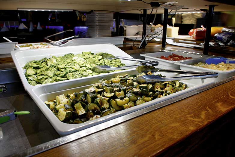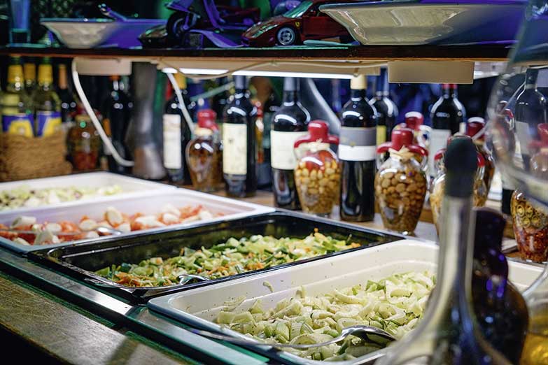 Zudem kann man sich dann auch noch am umfangreichen Buffet mit Antipasti, zahlreichen Salaten, Gemüse und saisonalen Beilagen selbst bedienen.