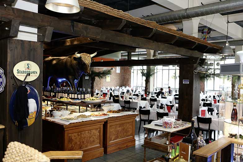 Kulinarische Attraktion des Hauses ist das Rodizio (übersetzt „das sich Drehende") mit bis zu 10 Fleischsorten vom Putenfilet bis zum Rumpsteak. Diese werden in einem riesigen Hightech-Gasgrill zubereitet und euch dann von einem der zahlreichen „Cortadores“ direkt am Tisch vom Spieß auf euren Teller geschnitten. Ihr bestimmt die Größe der Portion und könnt so oft nachordern, wie ihr wollt.