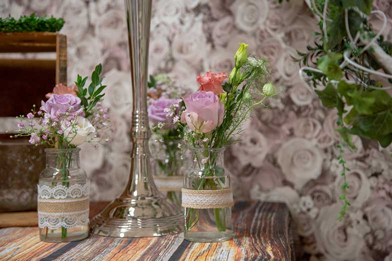 Die Inhaberin Doreen Mildner und ihr Team bietet ein Rundum-sorglos-Hochzeits-Paket an, das auf das Thema der Hochzeit mit dem entsprechenden Farb- und Dekokonzept abgestimmt ist. Dabei werden die Arrangements ganz individuell zusammengestellt: Blumen für den Bräutigam, die Brautjungfern, Trauzeugen, Autoschmuck, Hochzeitsstrauß, Tisch- und Locationdekoration und vieles mehr. Lassen Sie sich gerne frühzeitig beraten, damit dem entspannten "Ja-Wort" nichts mehr im Wege steht.