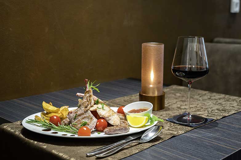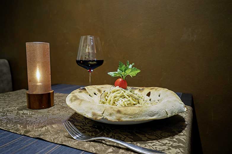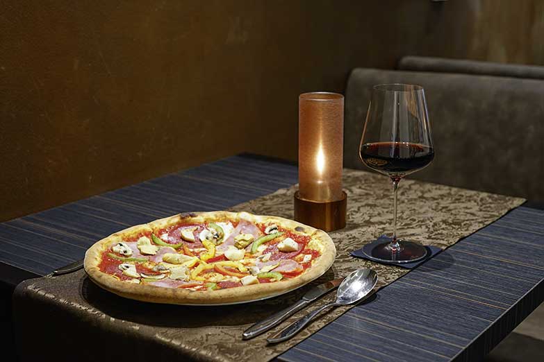 Die Küche bietet das volle italienische Programm: Antipasti, Salate, Pizza, Pasta, Risotto, Fisch- und Fleischvariationen. Als Starter z.B. Carpaccio di Manzo, Vitello Tonnato Classico oder die hausgemachte Edel-Fischsuppe. Danach vielleicht Taglierini mit schwarzen Trüffeln im Pizzateig-Nest, Risotto Milanese mit Garnelen und Safran oder Tagliatelle mit Rinderfiletstreifen und Champignons. Zum genussvollem Hauptgang locken Kalbskotelett mit Salbeibutter und Rosmarin, gegrillte Lammkoteletts, Rinderfilet in Trüffelsauce oder eine Fischvariation mit mediterranen Kräutern. Dazu wird jeweils ein kleiner gemischter Salat, Ofenkartoffeln, Broccoli oder Spinat gereicht.