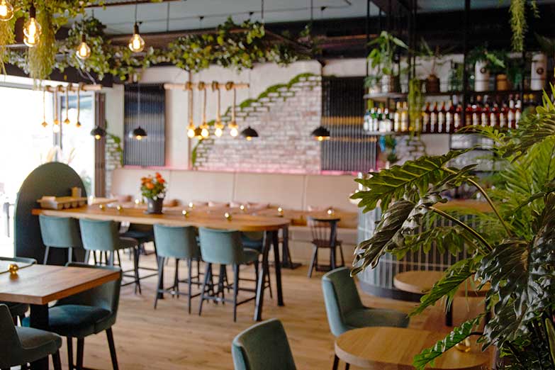 Das Stadtkind im ehemaligen Arcachon am Bohlweg hat seit 08.07.2023 geöffnet. Und die lange Umbauphase hat sich gelohnt. Das Lokal wurde komplett entkernt, ganz neu und sehr modern designt. Panorama-Verglasung, Fliesen in Holzoptik, 3D-Tapeten im Backstein-Look, urbane Hängelampen im industrial Style, gemütliche Sitzbänke, klassische Bistro- und türkisfarbene Polsterstühle, dekorative Grünpflanzen - hier wurde ein urbanes Loft-Ambiente über zwei Etagen mit viel Liebe zum Detail geschaffen. Vom schicken Obergeschoss und dem großen Außenbereich mit 100 Plätzen hat man zudem einen direkten Blick auf den turbulenten Bohlweg und die Schloss-Arkaden.