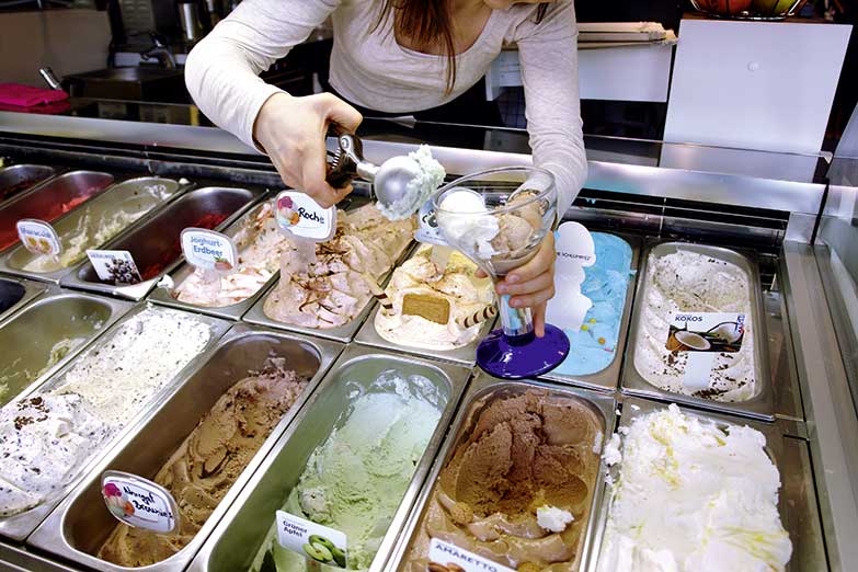 Ein weiteres Highlight: das hausgemachte Eis in vielfältigen Kreationen und ca. 25 Geschmacksnoten.