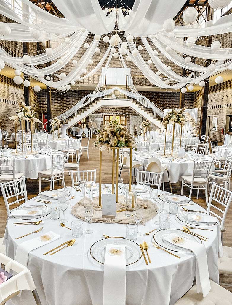 In dem monumentalen, unter Denkmalschutz stehenden Gebäude der ehemaligen Schachtanlage Haverlahwiese befindet sich eine, zur Veranstaltungslocation umgebaute, ehemalige Industriehalle - und die hat es in sich: massive Wände aus rötlichen Klinkern, die kathedrale Höhe in Kombination mit der besonderen Deckenkonstruktion, der gewaltige Treppenaufgang zur Rundempore, die mit umlaufenden Lichtbändern versehen ist … einfach einmalig und außergewöhnlich.