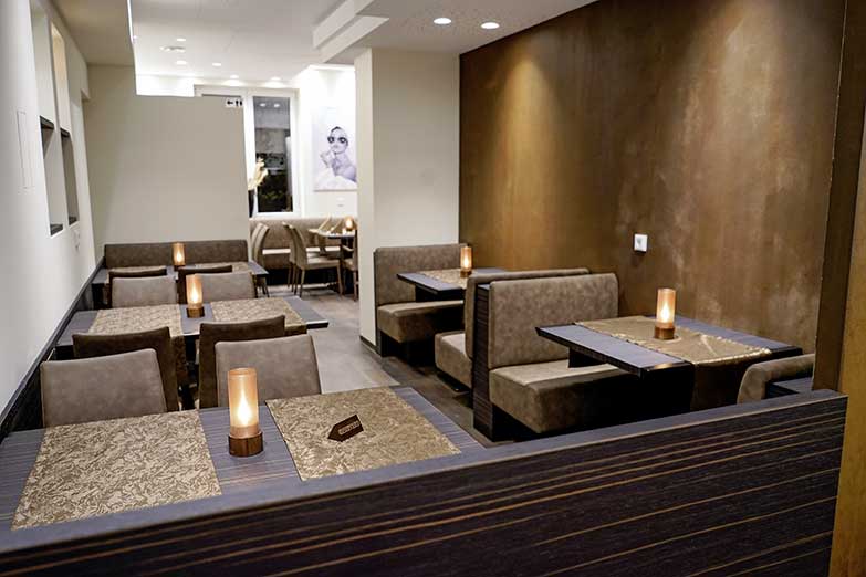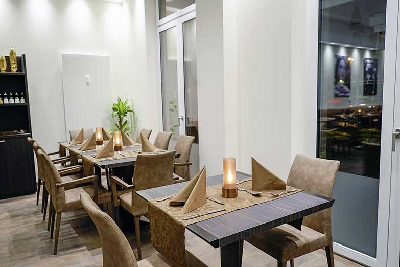 Inhaber Herr Tahiraj, der schon über 15 Jahre das Eiscafé und Pizzeria Roni erfolgreich führt, hat hier ein sehr schönes Domizil für Freunde der italienischen Küche geschaffen. Das edel wirkende Ambiente in braunen Erdtönen mit großem Tresen, Ledermobiliar, schick eingedeckten Tischen, gemütlichen Nischen, Schwarz-Weiß-Foto-Bildern und Fliesenböden in Holzoptik schafft eine warme Atmosphäre, in der man sich gleich wohl fühlt.