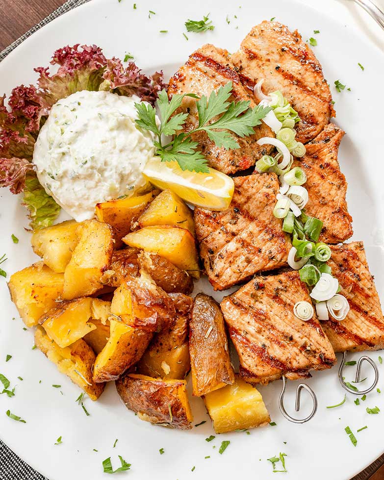 Die Küche serviert neben gut portionierten griechischen Klassikern, wie Gyros, Grillplatten, Souflaki, Spezialitäten vom Lamm, knackigen Salaten auch Fisch und Meeresfrüchte, z.B. knusprig gebratene Calamari mit frischem Gemüse und Reis, oder auch Steak vom argentinischem Rind mit einer hausgemachten BBQ Sauce und Rosmarinkartoffeln.