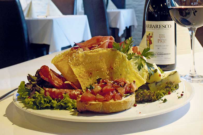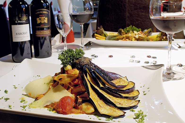 Und auch die Küche hat einiges zu bieten: Antipasti … von Carpaccio, Vitello Tonnato bis zur Mediterraneo Platte mit gefüllten Sardinen, gratinierten Muscheln, Oktopus und Räucherlachs, außerdem Fleisch- und Fischspezialitäten, wie das Lammfilet in Barolosauce, Rinderfilet al Gorgonzola, Doradenfilet in Zucchinikruste oder die gemischte Fisch-Grillplatte. Tagesgerichte, saisonale Kreationen, neapolitanische Pizzen aus dem holzbefeuerten Ofen und Pasta-Variationen, Qualitätsweine von Amarone bis Barolo oder regionales Bier aus Fallersleben runden das Angebot ab.